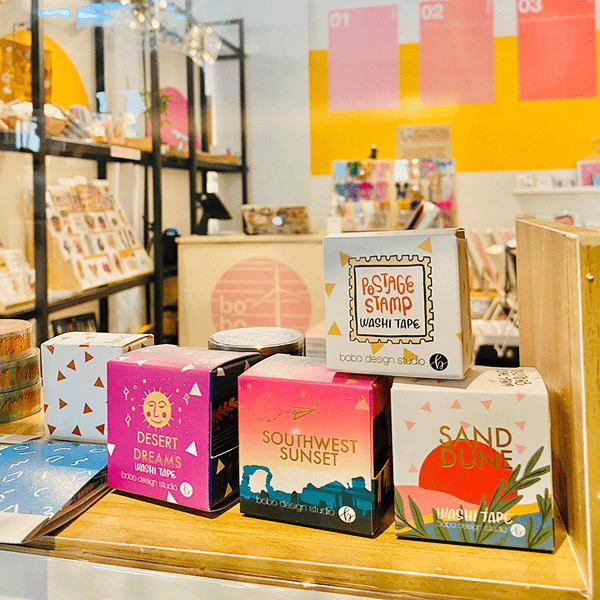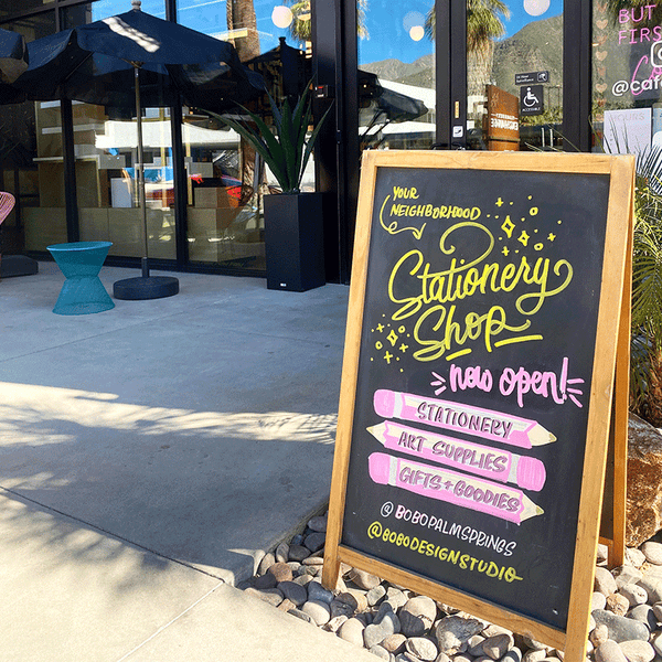 Shop our flagship store in sunny Palm Springs, CA and enjoy our collection of curated goods from bobo design studio, artisan stationery from women of color owned brands, queer owned brands, rare goods from japan, and or favorite writing tools!
